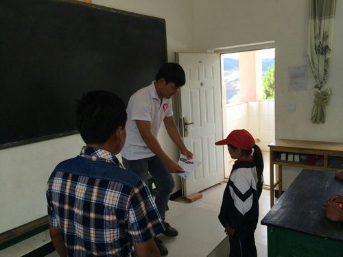 2014年“六一”国际儿童节,云南大理宾川康庄农业观光公司团支部的青年志愿者与团县委领导一起到钟英乡西山完小看望慰问小朋友们,为小朋友们送上节日的祝福和礼物,与小朋友们欢度“六一”。