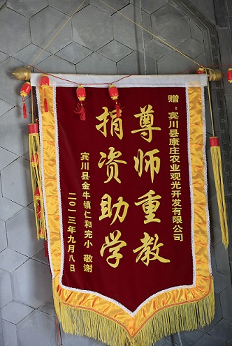 百年大计,教育为本。 2013年为宾川县金牛镇仁和完小捐助助资金,图为学校赠送锦旗感谢。