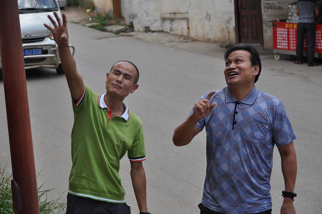 图为董事长康建洪与昆明片区销售经理张国洪现场策划